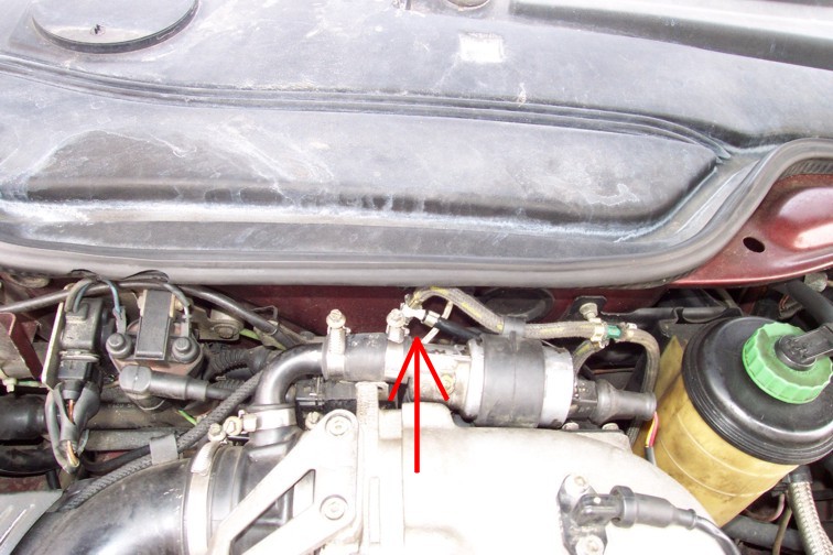 der Ansaugbrücke zum Benzinregler hin ein T-Stück gesetzt (